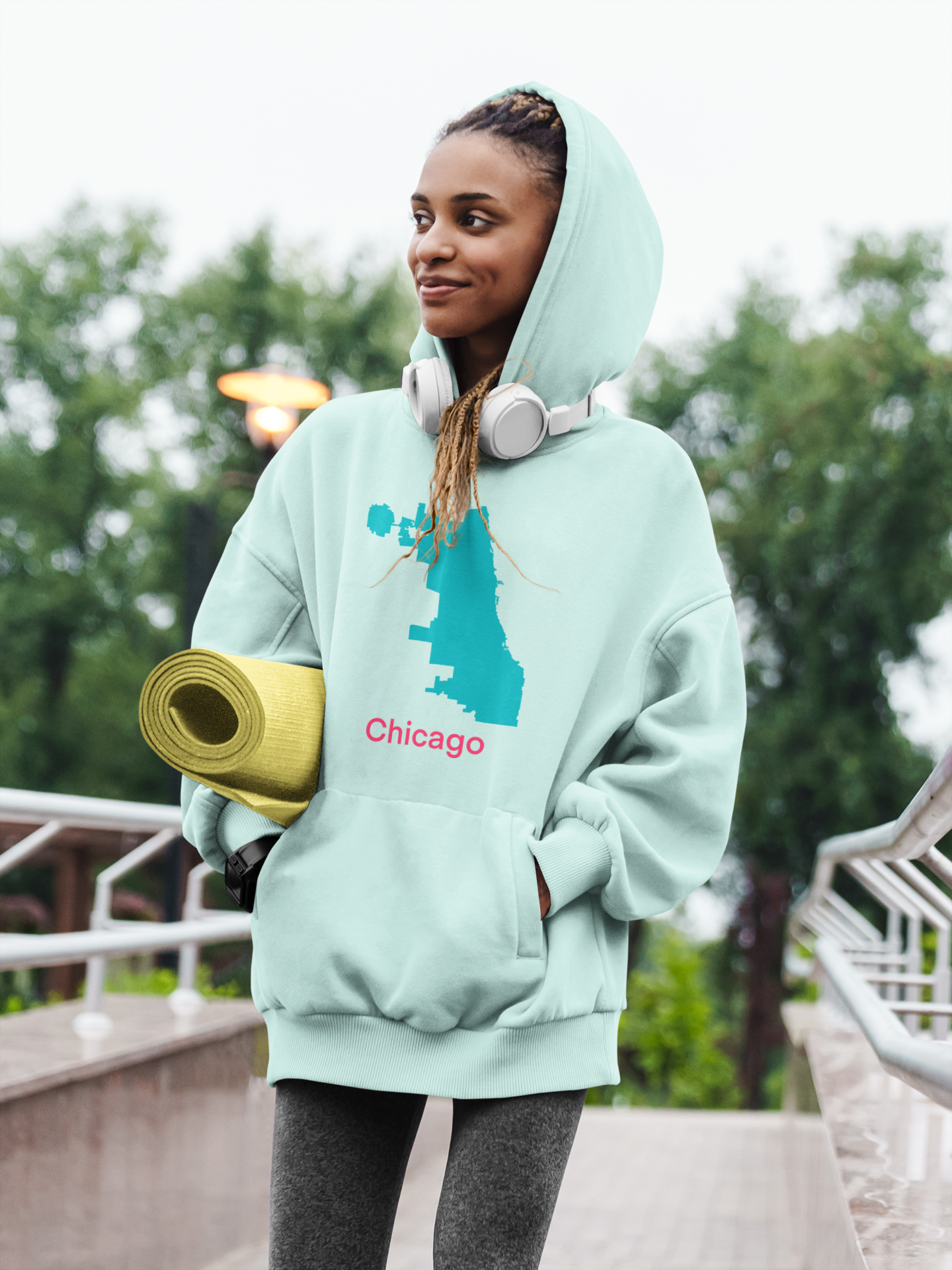White Foam Yoga Mat - Seattle Teal Hot Pink